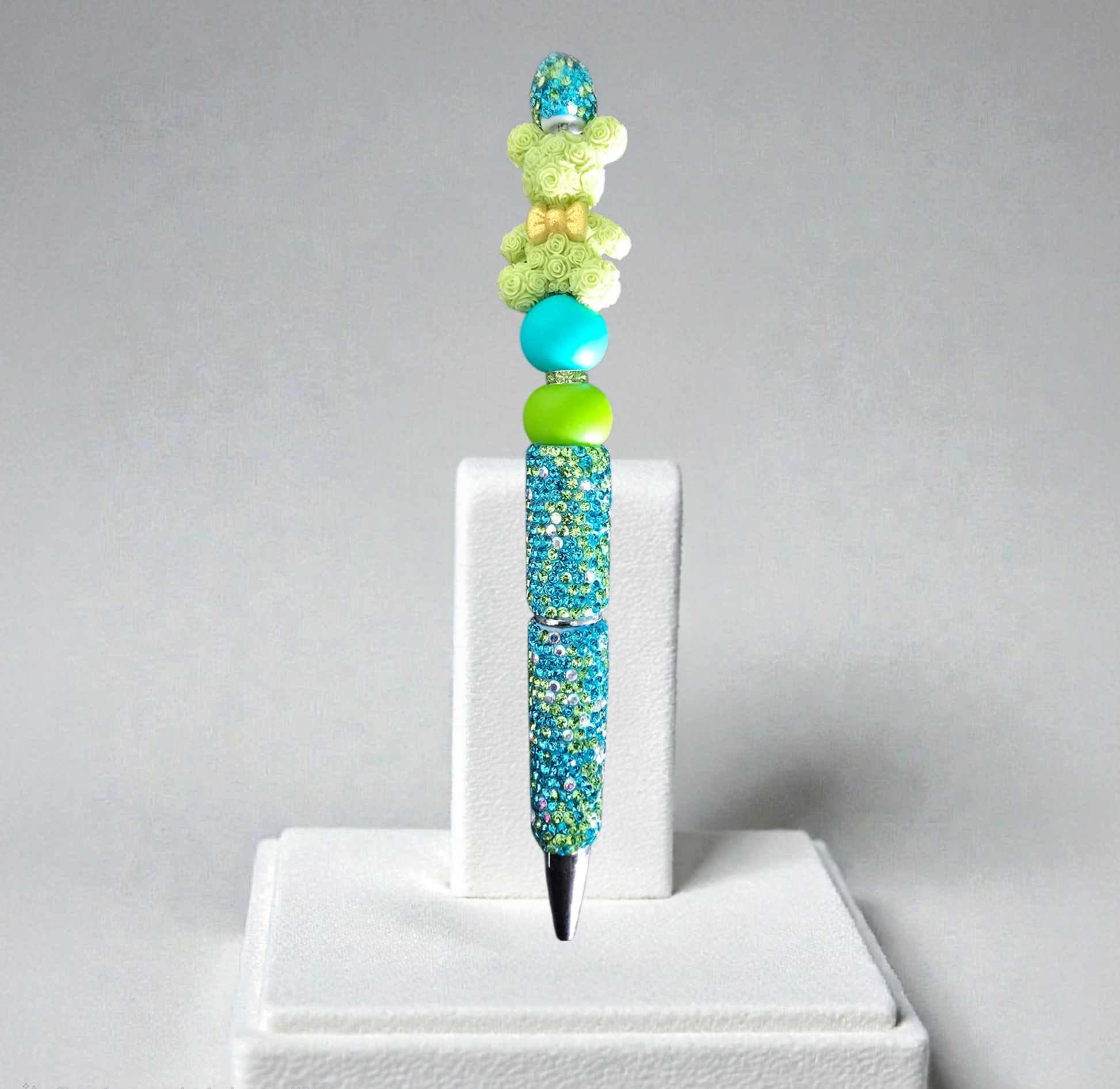 Stylo strass fait main ourson vert 🧸